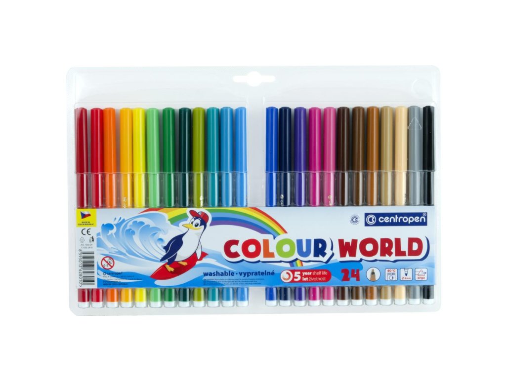 Farebné popisovače, ERGO držanie, zdraviu neškodlivý atrament, odolávajú vyschnutiu až 5 rokov, vyprateľné, ventilačný vrchnák, vláknový hrot odolný voči zatlačeniu šírka stopy 1 mm.