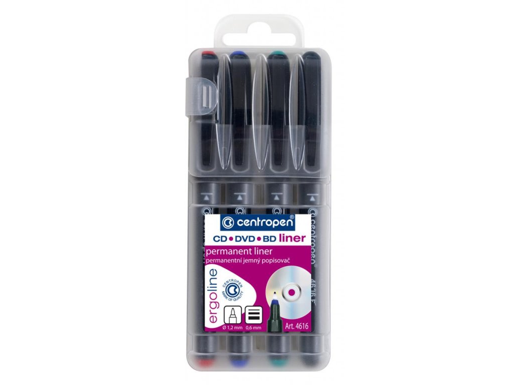 Liner s jemným plastovým hrotom v novom ergonomickom dizajne určený na popisovanie CD, DVD a BD diskov. Permanentný atrament na alkoholovej báze. Šírka stopy 0,6 mm. Sada 4 základných farieb.