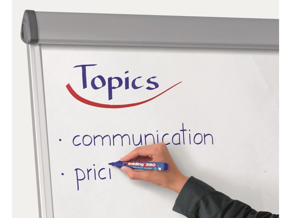 Popisovač s atramentom na vodnej báze a vlastnosťou Cap off, zabraňujúcou vysychaniu atramentu pri otvorenom hrote aj niekoľko dní. Na popisovanie flipchartových blokov a iných archov papiera. Opätovne naplniteľné atramentom FTK 25 (obj. kód ED625101-4), ktorý neprepíja na druhú stranu papiera. Hrot okrúhly, Šírka stopy 1,5 - 3 mm. Sada 4 farieb.