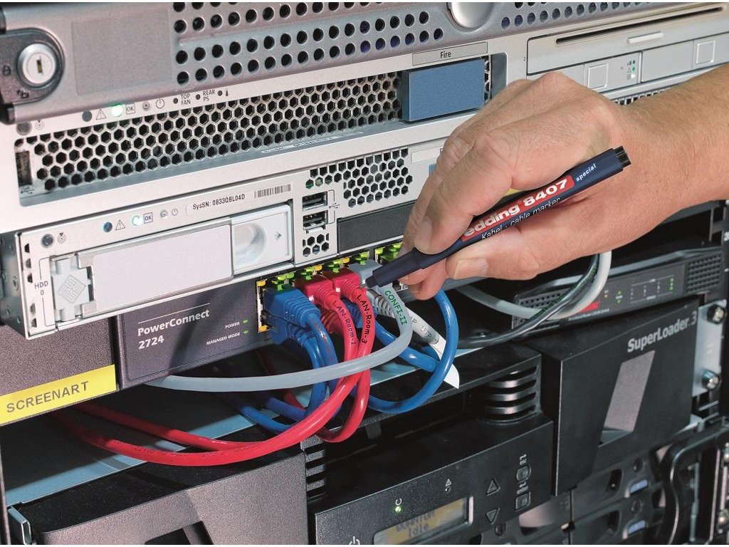 Popisovač s permanentným vodeodolným atramentom špeciálne vyvinutý na ultra tenké popisovanie, značenie a označovanie rôznych typov káblov. Šírka stopy 0,3 mm. Dodávaný v sade 4 ks.