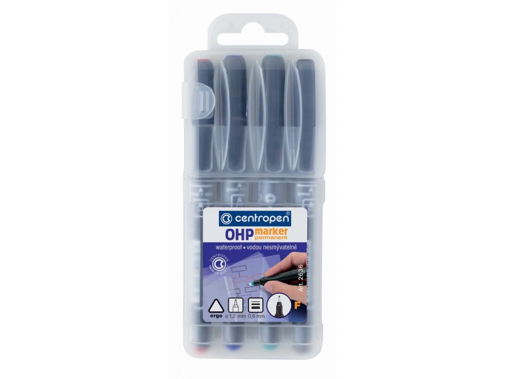 Permanentný popisovač určený nielen na popisovanie transparentných fólií do spätných projektorov, ale tiež na plastické hmoty, sklo a pod. Šírka stopy 0,6 mm. Sada 4 ks.