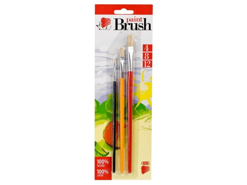Sada 3 plochých školských štetcov s farebnou rúčkou. Štetina 100% poník. Ideálne na maľovanie vodovými a temperovými farbami. Šírka štetiny 4-8-12 mm.