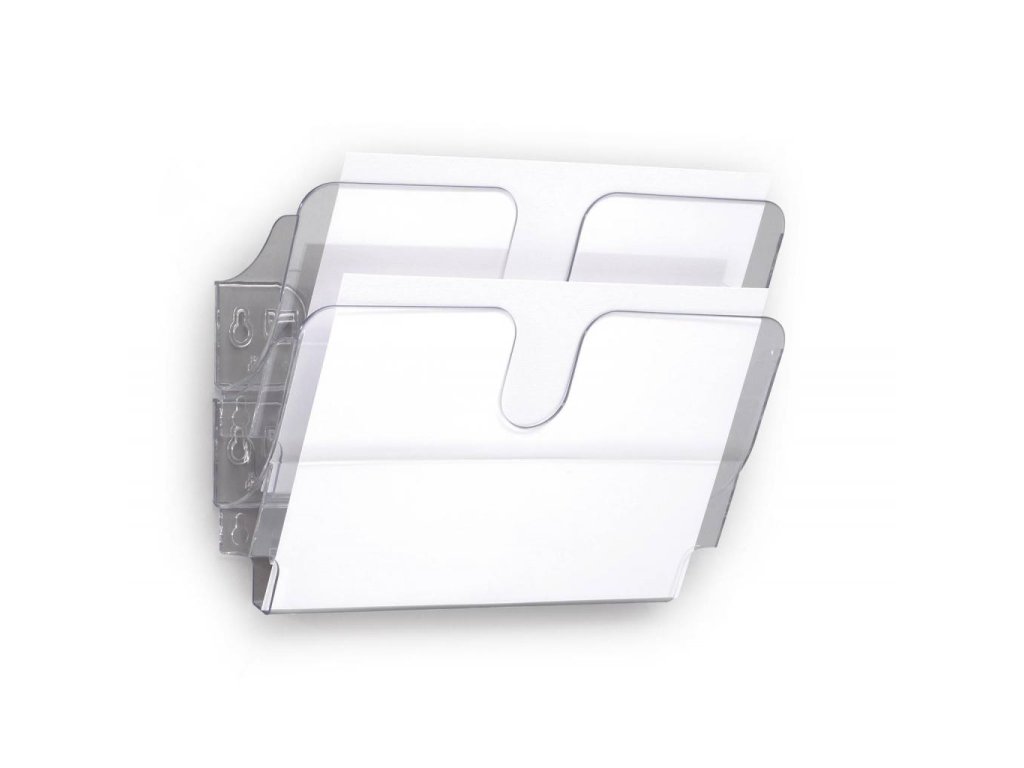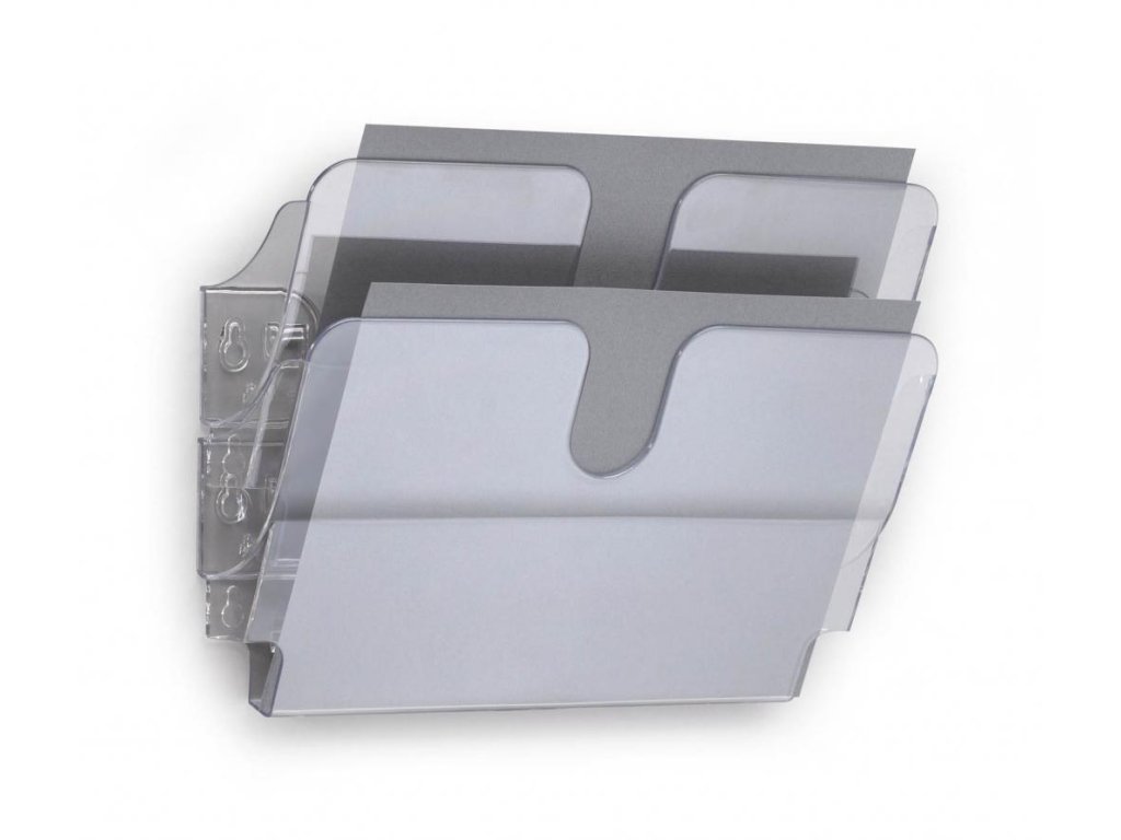 Nástenný stojan na prospekty FLEXIPLUS s 2 priehradkami na informácie vo formáte A4 na šírku, s plniacim objemom 23 mm.