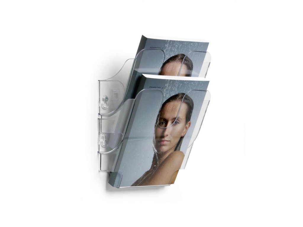 Nástenný stojan na prospekty FLEXIPLUS s 2 priehradkami na informácie vo formáte A5, s plniacim objemom 23 mm.