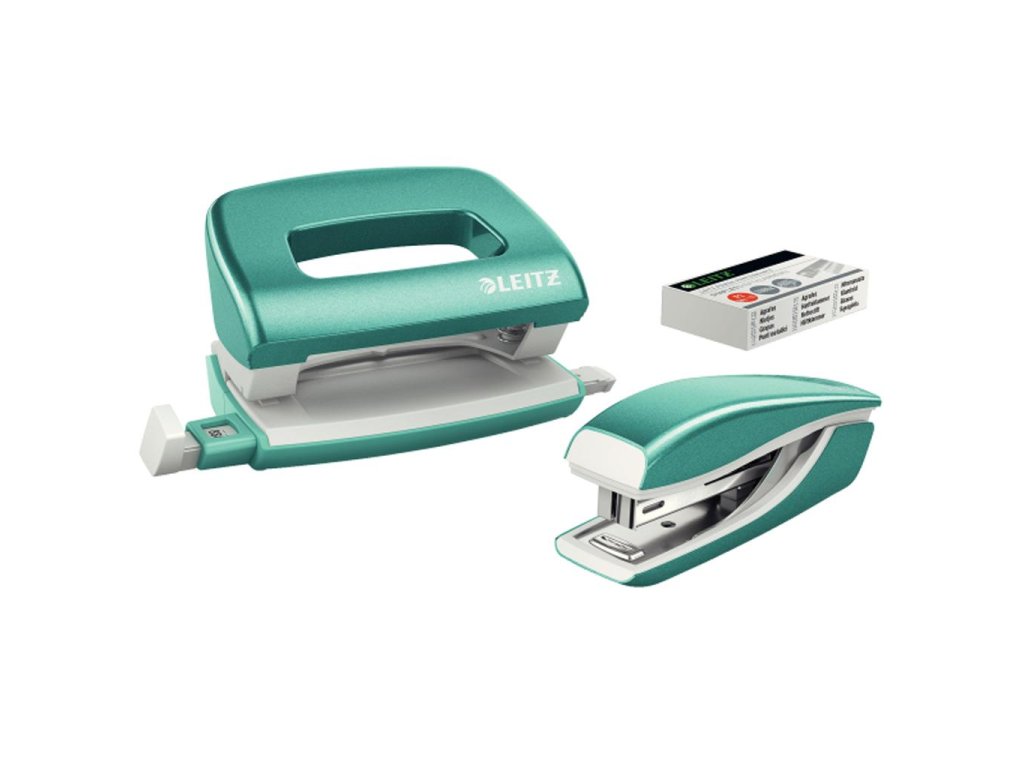 Sada zošívačka a dierovačka Leitz WOW mini ľadová modrá