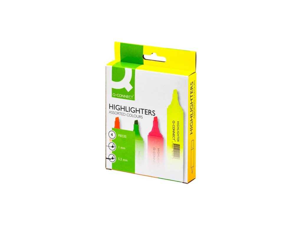 Univerzálny zvýrazňovač neónových farieb s klipom. Hrot zrezaný, šírka stopy 2 - 5 mm. Dodávaný v sade 4 farieb.