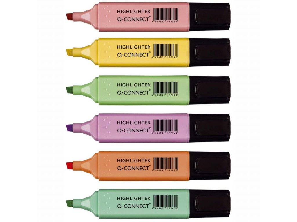 Zvýrazňovač so žiarivým pastelovým atramentom na zvýraznenie dôležitých slov. Hrot zrezaný, šírka stopy 1 - 5,2 mm, dĺžka písania cca 200 m. Väčšie balenie 10 ks v jednej farbe. Farba pastelová mix. Sada 6 kusov.