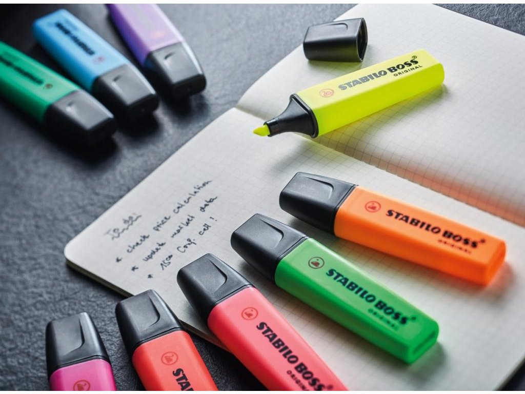 Zvýrazňovač pre všetkých, ktorí sa pri čítaní potrebujú sústrediť na to podstatné. Produkt STABILO BOSS ORIGINAL ponúka najvyššiu kvalitu spracovania, atramentu a pohodlia pri písaní. Technológia STABILO Anti-Dry-Out chráni štyri hodiny pred vyschnutím. Zvýrazňovač je možné doplniť náplňami STABILO BOSS. Balenie sada 4 kusy. Väčšie balenie 10 sád.