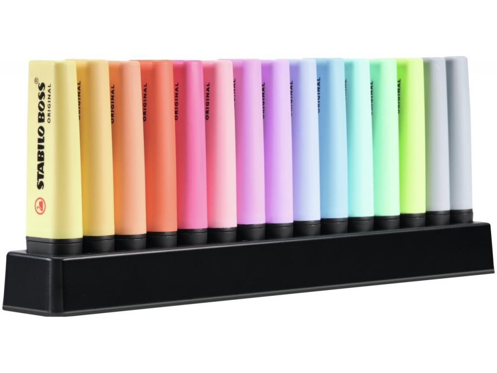 Sada zvýrazňovačov STABILO BOSS ORIGINAL Pastel 15 ks Stolný set so 14 rôznymi farbami