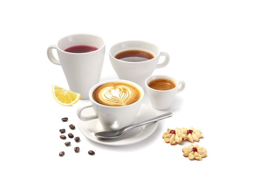 Šálky na cappuccino s unikátne tvarovaným dnom, ktoré dokonale sedia na jedinej univerzálnej podšálke. Vyrobené z prvotriedneho porcelánu, vhodné do umývačky. 5 rokov záruka. Balenie 6 kusov. Farba biela. Objem 180 ml.