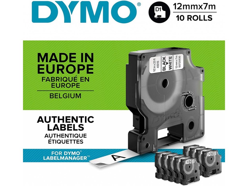 Samolepiaca páska Dymo D1 12 mm biela/čierna, 10ks