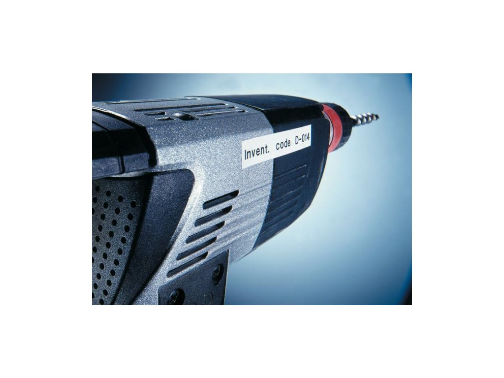 Permanentné pásky odolné voči vode, olejom, organickým zlúčeninám. Podkladová páska, text a lepidlo odolávajú teplotám -30 °C až do +150 °C. Majú dobrú priľnavosť na ABS, PVC, PE, Acrylic, sklo, drevo, papier a nerezovú oceľ. Sú určené pre Dymo zariadenia. Dĺžka 7 m.