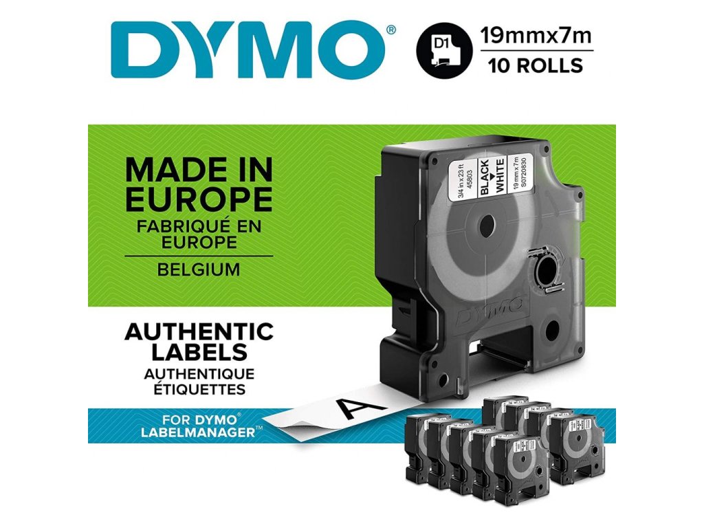 Samolepiaca páska Dymo D1 19 mm biela/čierna, 10ks
