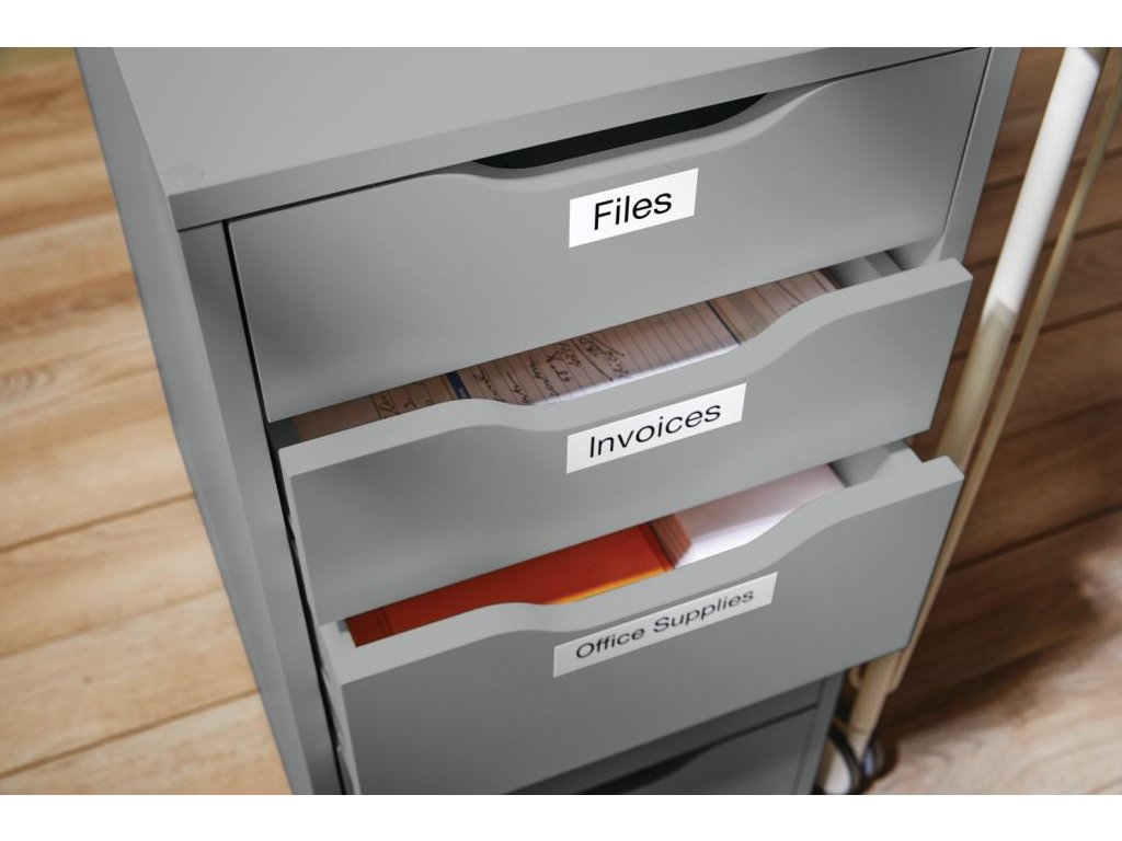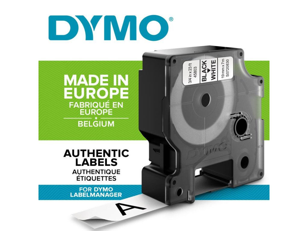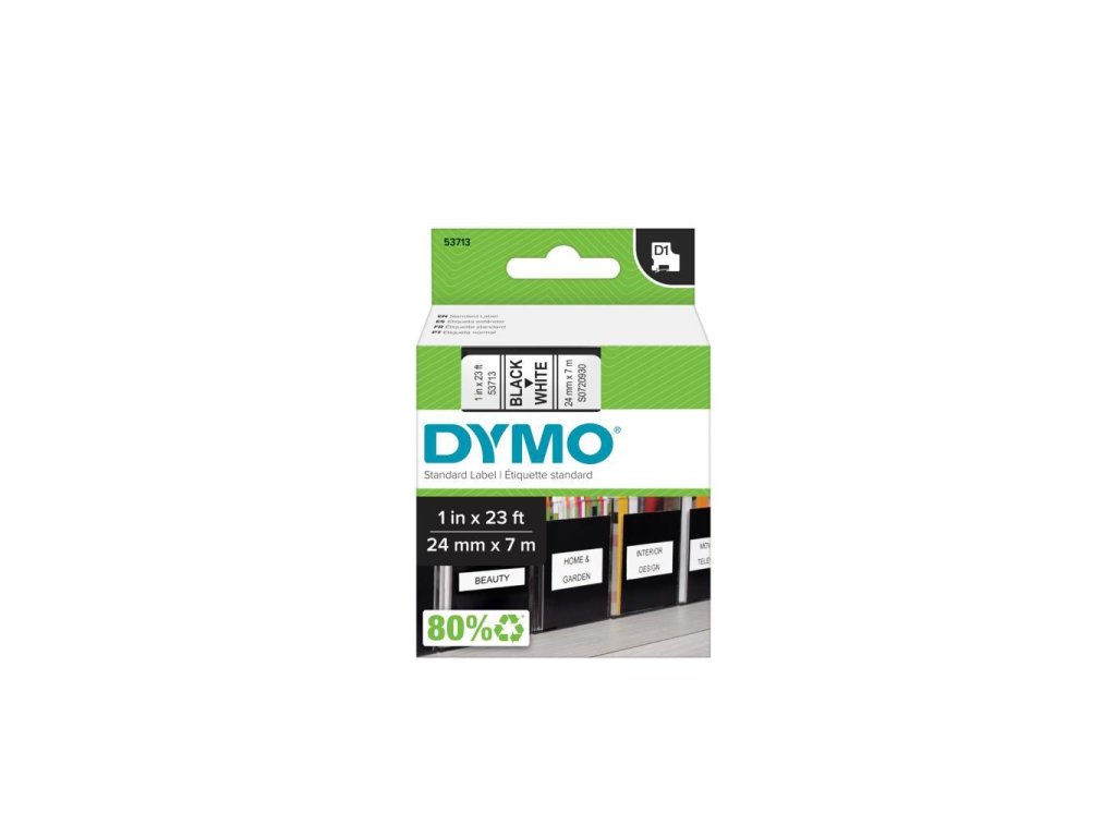 Permanentné pásky odolné voči vode, olejom, organickým zlúčeninám. Podkladová páska, text a lepidlo odolávajú teplotám -30 °C až do +150 °C. Majú dobrú priľnavosť na ABS, PVC, PE, Acrylic, sklo, drevo, papier a nerezovú oceľ. Sú určené pre Dymo zariadenia. Dĺžka 7 m.
