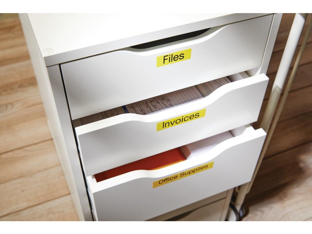Permanentné pásky odolné voči vode, olejom, organickým zlúčeninám. Podkladová páska, text a lepidlo odolávajú teplotám -30 °C až do +150 °C. Majú dobrú priľnavosť na ABS, PVC, PE, Acrylic, sklo, drevo, papier a nerezovú oceľ. Sú určené pre Dymo zariadenia. Dĺžka 7 m.