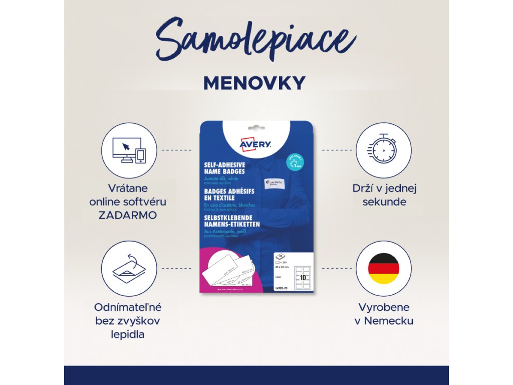 Samolepiace menovky Avery na textil 80x50mm, materiál acetátový hodváb