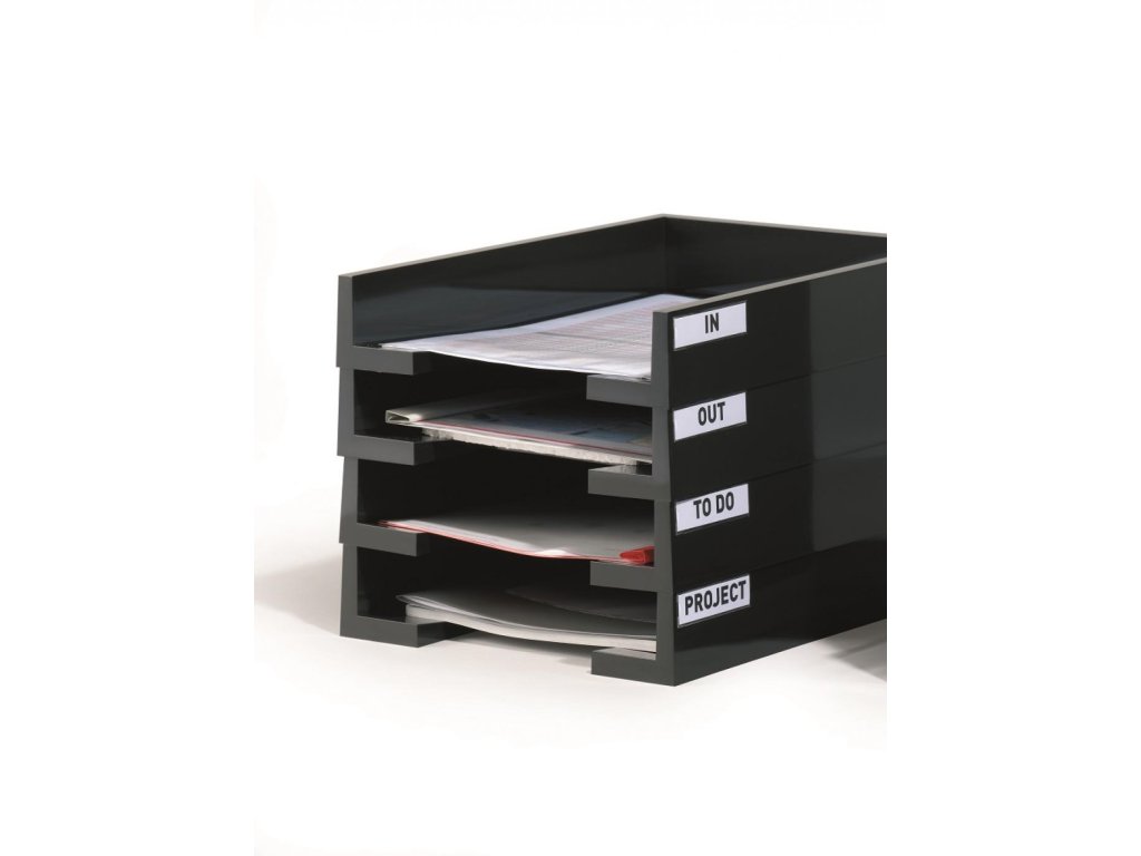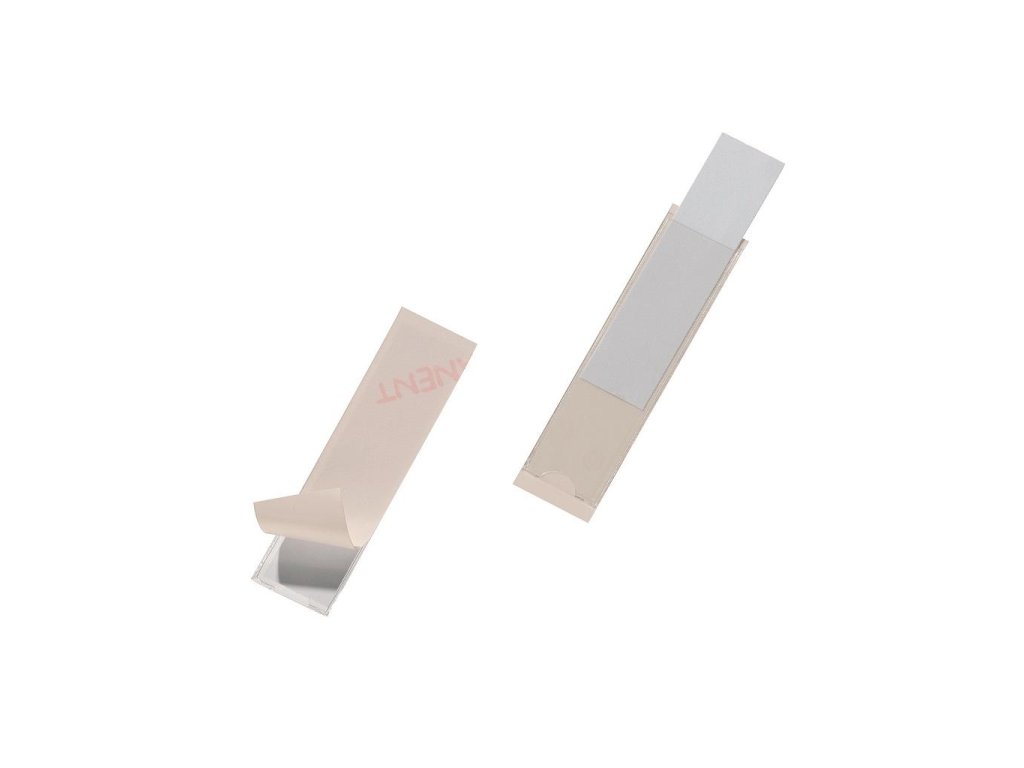 Vrecká vhodné na popis zakladačov, krúžkových blokov, priehradok a pod. Výrez na vrecku uľahčuje manipuláciu s vloženým popisným štítkom. Obsahom balení sú čisté zasúvacie štítky.