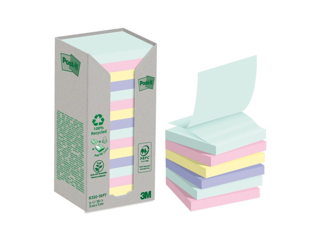 Samolepiace Z-Bločky Post-it recyklované, NATURE, 76x76 mm, dúhové, 16x100 lístkov