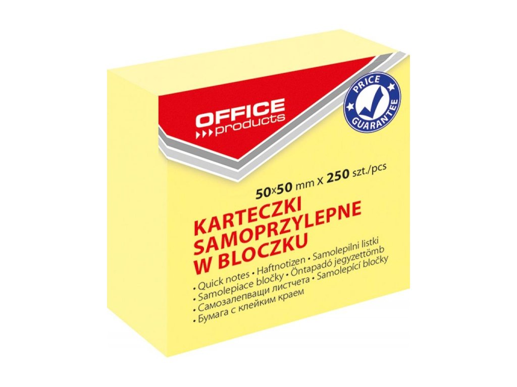 Lepiace bločky na poznámky, ideálne na zanechanie správ v kancelárii alebo doma. Počet lístkov: 250 vo veľkosti 50x50mm. Každá kocka je jednotlivo zabalená do fólie. Farba: pastelovo žltá.