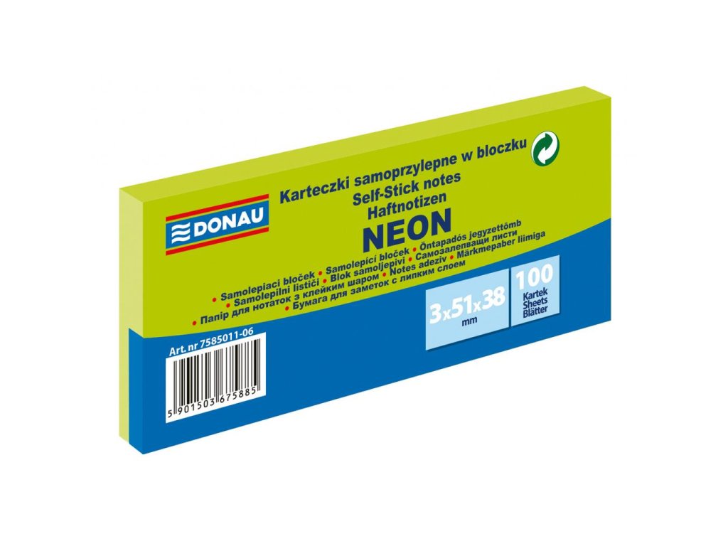 Univerzálne neónové samolepiace bločky z papiera gramáže 70 g / m², 100-lístkové, jednotlivo balené. Lepidlo nanesené po dlhšej strane, zmývateľné vodou. Udelený Green Point. 3 bločky vo fólii s červeným pruhom na uľahčenie otvárania. Väčšie balenie 36 ks. Farba zelená.