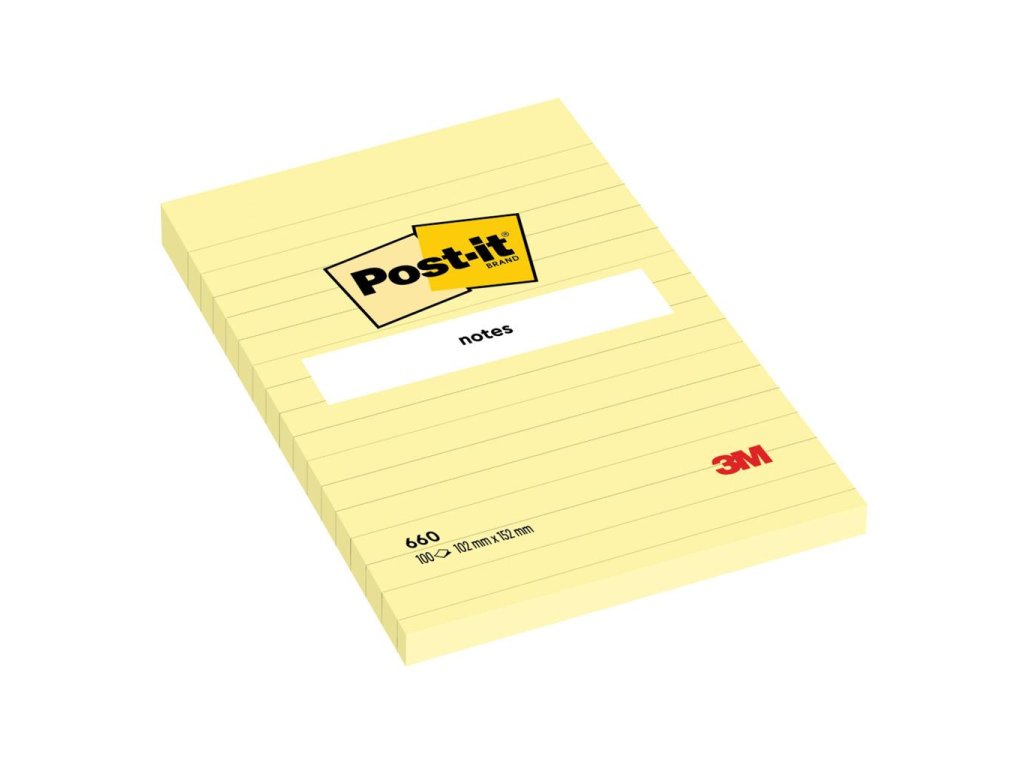 Žlté samolepiace bločky vo veľkom formáte s linajkami, určené pre štruktúrované poznámky a zefektívnenie organizácie