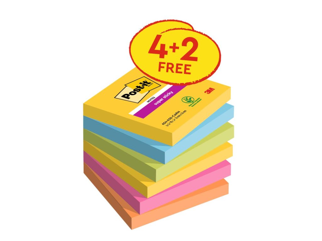 Samolepiaci bloček Post-it Carnival 76x76, 4 + 2 Zadarmo, 90 lístkov v bločku