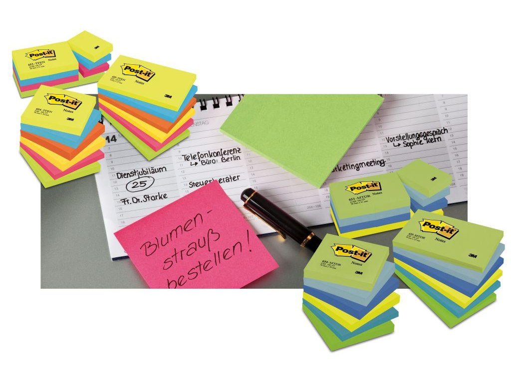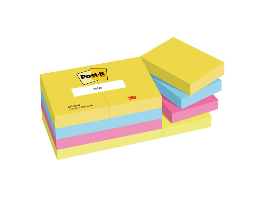 Samolepiaci bloček Post-it ENERGETIC, 38x51mm, 12x100 lístkov