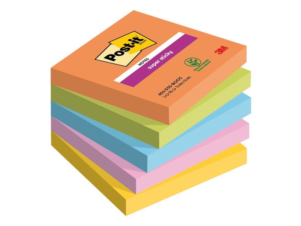 Samolepiaci bloček Post-it Super Sticky BOOST, veľkosť 76x76 mm, 5 bločkov po 90 lístkov