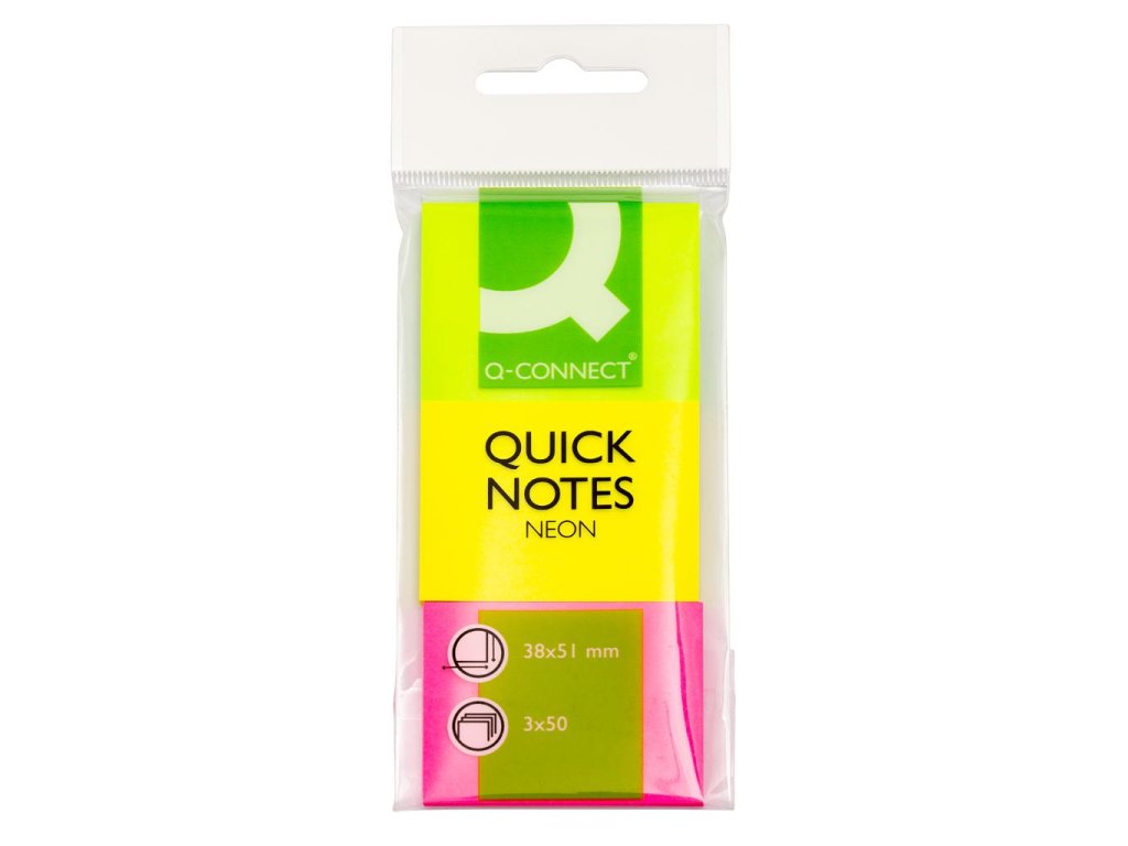 Samolepiaci bloček Q-CONNECT 51x38 mm, zelená, ružová, žltá, 3 bločky po 50 lístkov