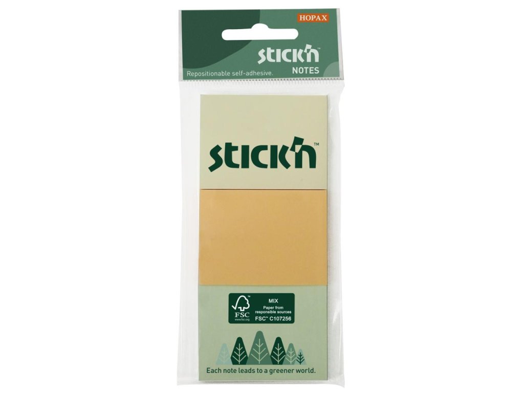 Samolepiaci bloček Stick’n Hopax, 38x51 mm, mix pastelových farieb, 3x100 lístkov