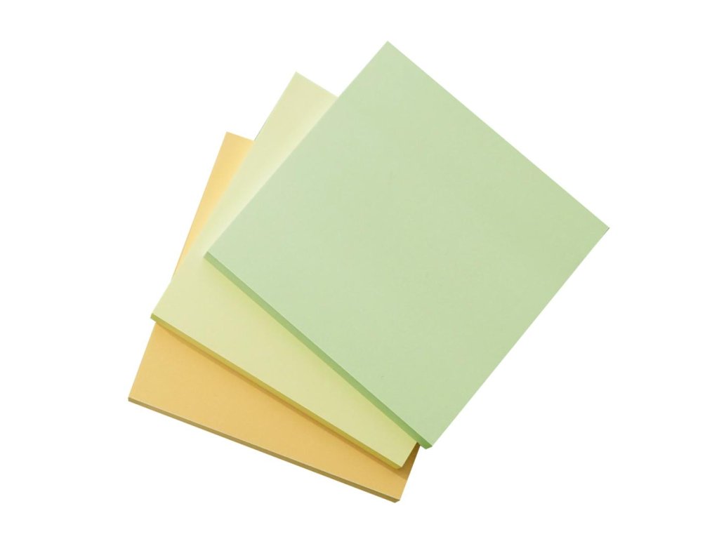 Samolepiace bločky v mixe pastelových farieb vyrobený z papieru, ktorý pochádza z ekologicky obhospodarovaných lesov. Certifikovaný papier šetrný k prírode využívá lepidlo na vodnej báze. Lístky idú ľahko nalepiť a odlepiť, napriek tomu skvelo držia. Nezanechávajú stopy po lepidle. Rozmery: 76 x 76mm, 3x50 lístkov, mix pastel. farieb, 3 bločky v balení.