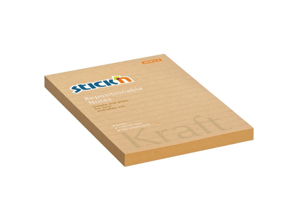 Samolepiaci bloček Stick’n Hopax Kraft, 150x101 mm, prírodná hnedá, linajkový