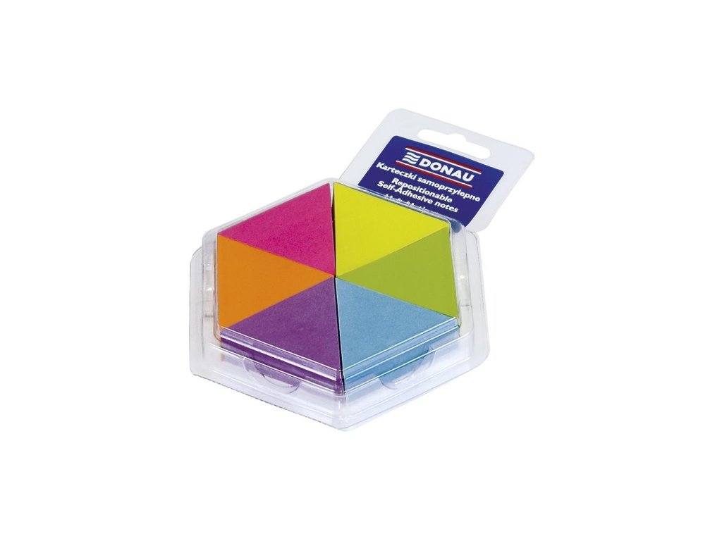 Samolepiace poznámkové bločky v tvare trojuholníka, v 6 pútavých neónových farbách. Počet lístkov: 6x150 vo veľkosti 43x50mm. Hmotnosť: 75 g / m2. Opätovne prelepiteľné. Farba: neónová.