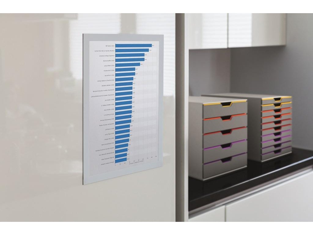Samolepiaci informačný panel s prednou magnetickou časťou. Ideálny na vystavovanie kľúčových informácií, špeciálnych oznamov alebo dôležitých čísel. Informácie sa ľahko vymieňajú a sú čitateľné z oboch strán, ak sa panel umiestni napr. na okno alebo priehľadné dvere. Vhodný na hladké a pevné povrchy. V prípade potreby je ľahko premiestniteľný bez potreby vŕtania. Rámik vo formáte A4. Farba biela. Balenie 2 ks.