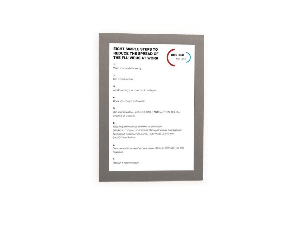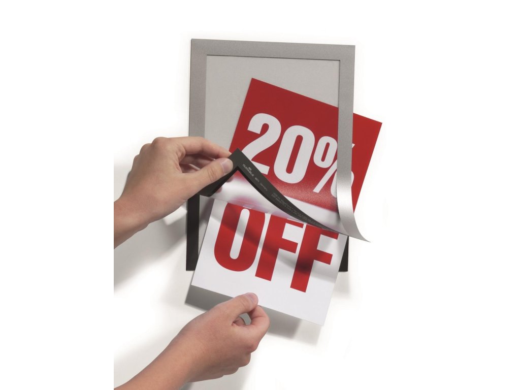 Samolepiaci informačný panel s prednou magnetickou časťou. Ideálny na vystavovanie kľúčových informácií, špeciálnych oznamov alebo dôležitých čísel. Informácie sa ľahko vymieňajú a sú čitateľné z oboch strán, ak sa panel umiestni napr. na okno alebo priehľadné dvere. Vhodný na hladké a pevné povrchy. V prípade potreby je ľahko premiestniteľný bez potreby vŕtania. Formát A5, farba rámu strieborná. V balení 2 ks.