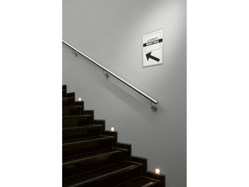 Samolepiaci informačný panel s prednou magnetickou časťou. Ideálny na vystavovanie plagátov, kľúčových informácií, špeciálnych oznamov alebo dôležitých čísel. Informácie sa ľahko vymieňajú a sú čitateľné z oboch strán, ak sa panel umiestni napr. na okno alebo priehľadné dvere. Vhodný na hladké a pevné povrchy. V prípade potreby je ľahko premiestniteľný bez potreby vŕtania. Formát A4, rámik strieborný.