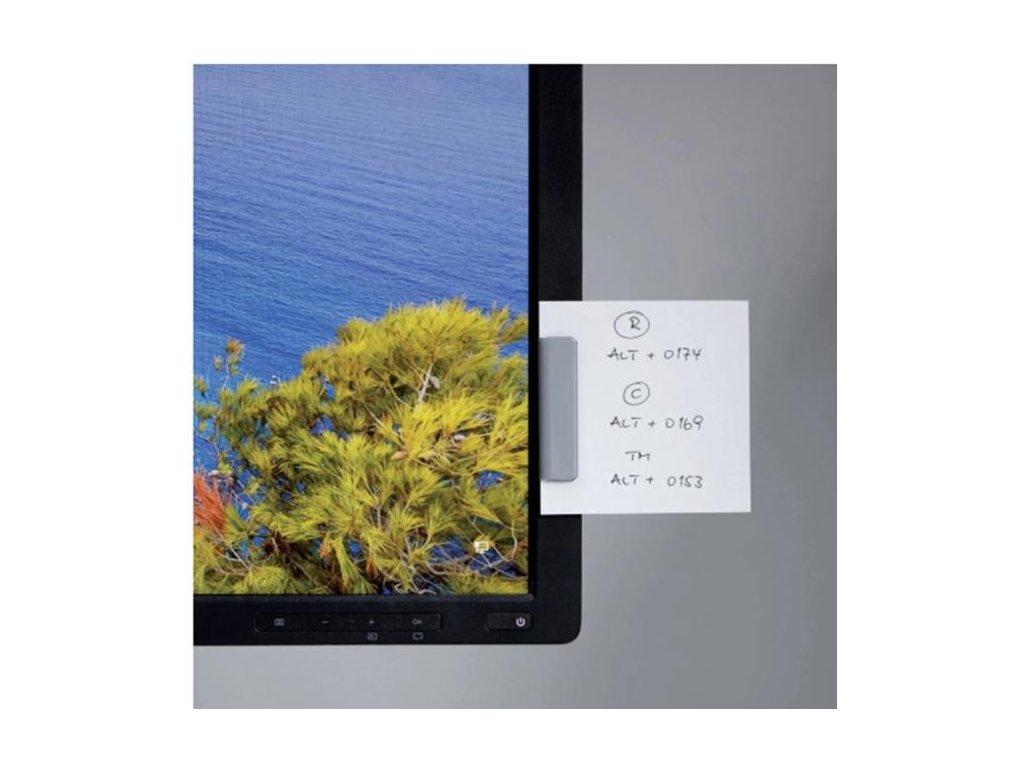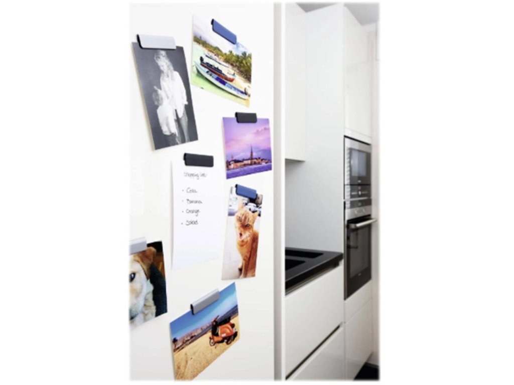 Magnetický klip pre poznámky, pripomienky, udalosti atď. Samolepiace ripevnenie na hladké povrchy, ako sú skrinky, chladničky, sklenené dvere alebo tabule. Farba čierna.