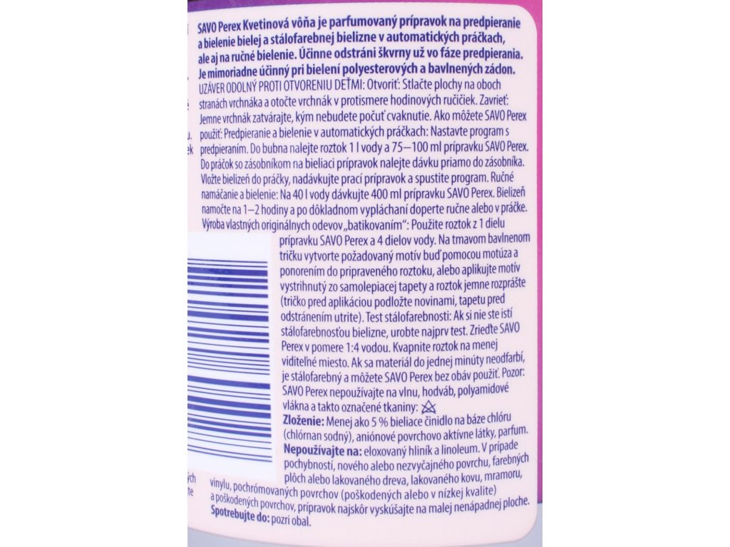 Menej ako 5 % bieliace činidlo na báze chlóru (chlórnan sodný), Aniónové povrchovo aktívne látky, Parfum