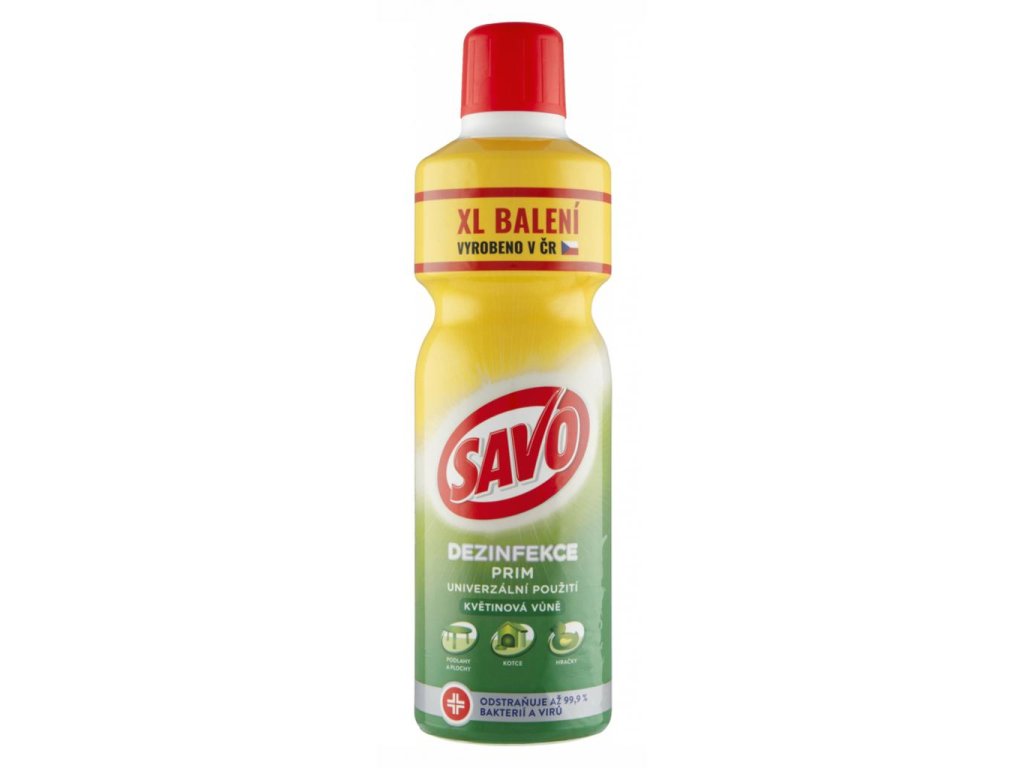 Príprava roztoku a riedenie: Do 1 l vody pridajte 200 ml prípravku Savo Prim (5 plných uzáverov) a nechajte pôsobiť 30 minút. Hračky, predmety a plochy, ktoré prichádzajú do styku s potravinami, opláchnite po 30 minútach pitnou vodou. Na zabezpečenie virucidného účinku aplikujte neriedený prípravok, nechajte pôsobiť 60 minút a potom opláchnite. Nepoužívajte na: eloxovaný hliník a linoleum. V prípade pochybností, nového alebo nezvyčajného povrchu, far. plôch alebo lakovaného dreva, lakovaného kovu, mramoru, vinylu, pochrómovaných povrchov najskôr vyskúšajte na malej ploche.