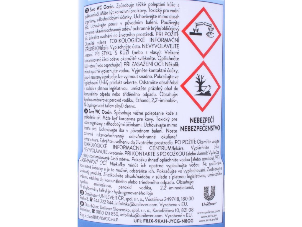 Pri kontakte s pokožkou (ALEBO VLASMI): Vyzlečte všetky kontaminované často odevu. Pokožku ihneď opláchnite vodou (alebo sprchou). PO ZASIAHNUTÍ OČÍ: Niekoľko minút ich opatrne vyplachujte vodou. Ak používate kontaktné šošovky a je to možné, odstráňte ich. Pokračujite vo vyplachovaní. Okamžite volajte TOXIKOLOGICKÉ INFORMAČNÉ STREDISKO alebo lekára.Zozbierajte uniknutý produkt, Zneškodnite nádobu v súlade s platnou legislatívou, umiestnite prázdnu nádobu do komunálneho odpadu. Obsahuje peroxid vodíka, kyselinu amidosírovú.