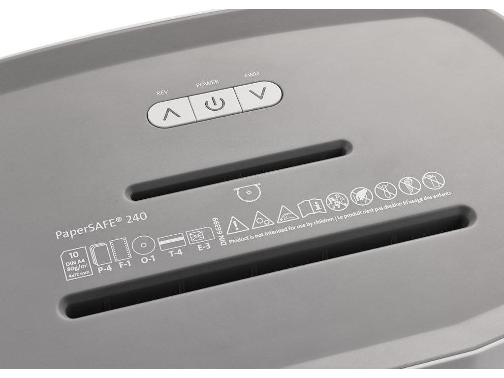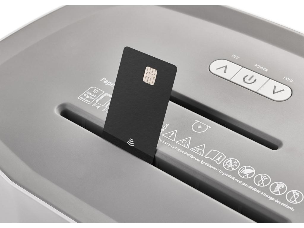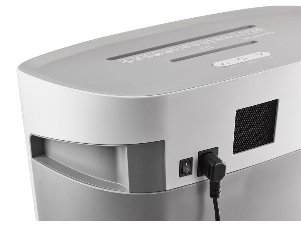 Univerzálna skartovačka k písaciemu stolu s jemným rezom na častice P-4. Bezúdržbová prevádzka bez použitia oleja. Extra malé častice pre menej časté vyprazdňovanie. Samostatná jednotka na spoľahlivú likvidáciu CD a DVD. Energeticky úsporný pohotovostný režim. Integrovaný senzor pre automatickú funkciu Štart/Stop. Automatický spätný chod uvoľní príliš veľké množstvo vloženého papieru. Komfortná funkcia manuálního obojsmerného chodu. Automatické bezpečnostné vypnutie. Optický ukazovateľ úrovne naplnenia. Samočistiace rezacie valce. Optická indikácia preťaženia. Ochrana pred prehriatím s optickým indikátorom.