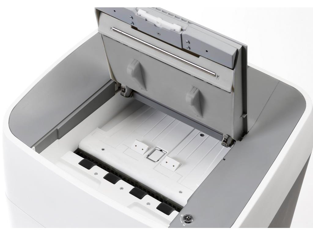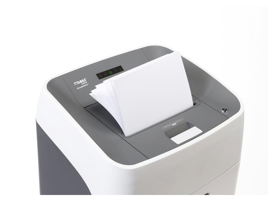 Bezúdržbová prevádzka bez použitia oleja. Vyšší výkon a komfort vďaka rezaciemu valcu MHP. Zariadenie s automatickým vypnutím po 10 minútach nečinnosti. Integrovaný senzor pre automatickú funkciu Start/Stop na zabezpečenie rýchlej dostupnosti a na bezpečné používanie. Automatický spätný chod uvoľní príliš veľké množstvo vloženého papiera. Komfortná funkcia manuálního obojsmerného chodu. Optický ukazovateľ úrovne naplnenia vďaka priehľadnému okienku. Funkcia automatického podávania skartuje až 300 listov (80 g/m²) v jednej dávke, s uzamykateľným podávačom papiera. Optická indikácia preťaženia. Ručné podávanie 12-14 listov papier (80 g/m²). Vyberateľná zberná nádoba. Úrovne zabezpečenia P-4/F-1/O-3/T-4/E-3