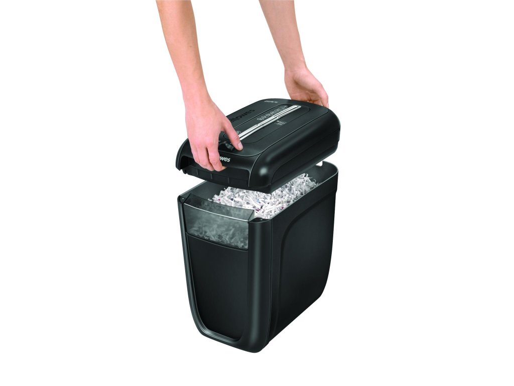 Skartovačka s elektronickým senzorom okolo vstupu na vkladanie papiera, ktorý pri dotyku rezného priestoru automaticky vypne chod skartovačky. Okrem papiera ničí spinky, kancelárske spony a magnetické karty. K vyprázdneniu nádoby treba zložiť hornú časť zariadenia.