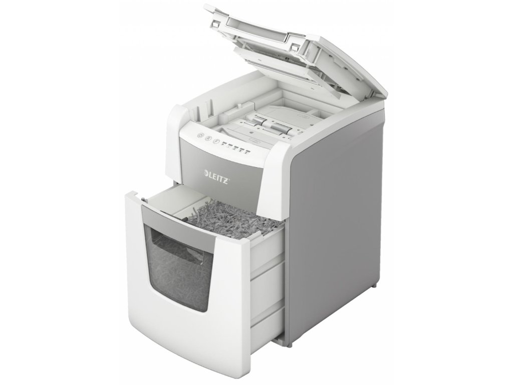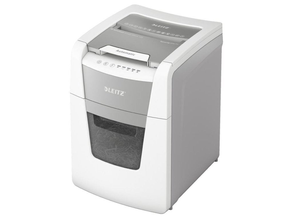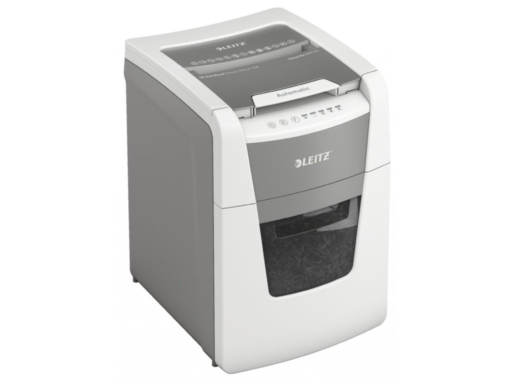 Plnoautomatická skartovačka na papier od firmy Leitz s jedinečnou čistou vyprázdňovacou funkciou. Je taká inteligentná, že potichu pracuje sama, len vložíte stoh papiera (vrátane kancelárskych sponiek a sponiek do zošívačky), zatvoríte veko a môžete ísť za svojou robotou. Ideálna na používanie v malej kancelárii. Mimoriadne dôveryhodná a vysokovýkonná skartovačka s automatickým podávaním, s funkciou proti zaseknutiu papiera, tichá a s dlhou dobou prevádzky (20 minút). Automaticky skartuje 100 hárkov A4 na úrovni zabezpečenia P-5 (2 × 15 mm) s mikrorezom do veľkého 34l koša. Jednoduché ovládanie pomocou dotykových prvkov.