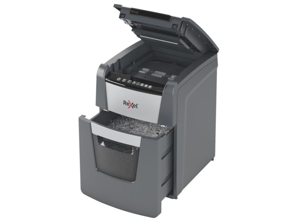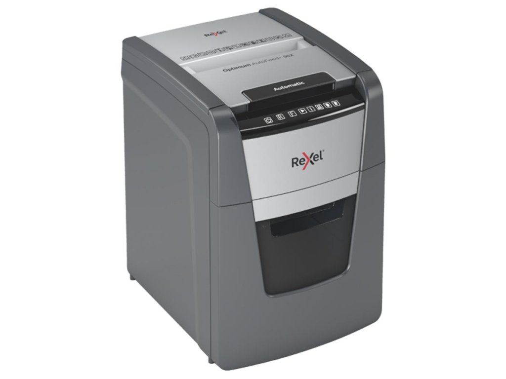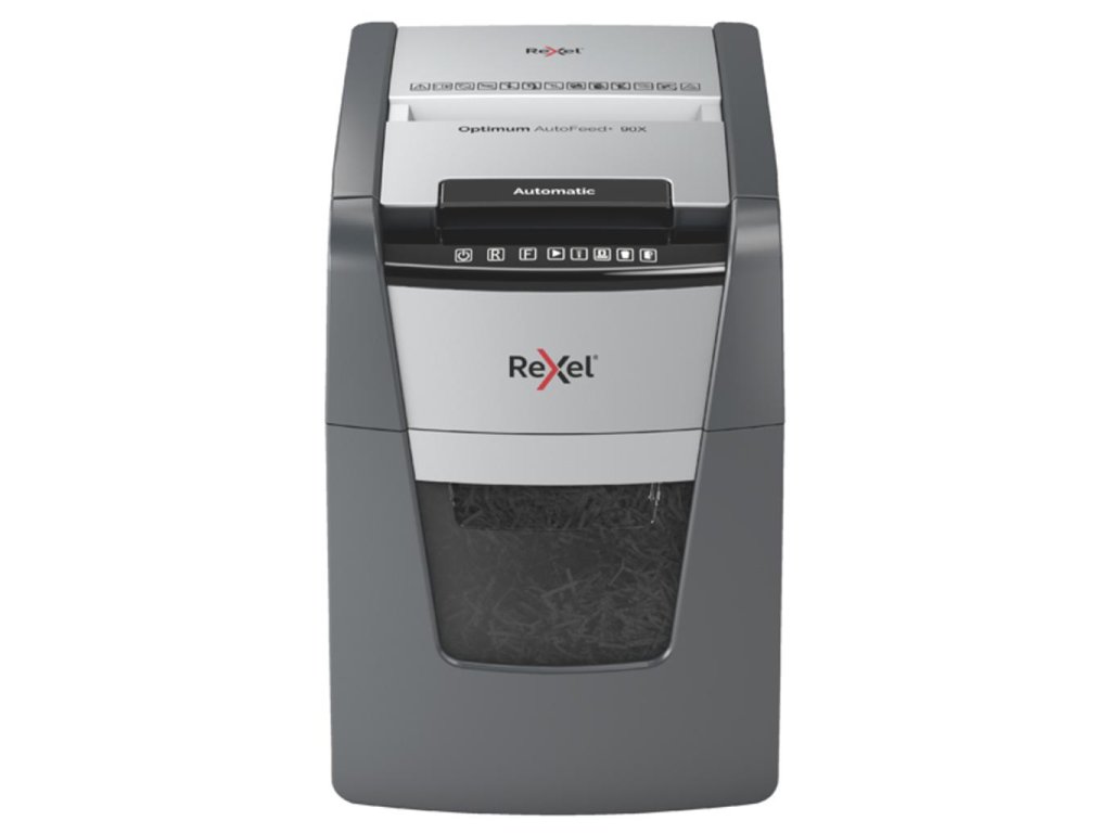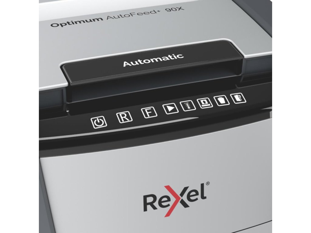 Skartovačka Optimum AutoFeed 90X automaticky skartuje až 90 listov papiera A4 (80 g / m2) krížovým rezom P-4 (4 x 28 mm). Táto skartovačka s automatickým podávaním je sofistikovaná kancelárska skartovačka s výsuvným košom o objeme 34L. Nie je potrebné ručne vkladať papier alebo vopred odstraňovať svorky a kancelárske sponky, táto automatická skartovačka papiera urobí všetko za vás.
