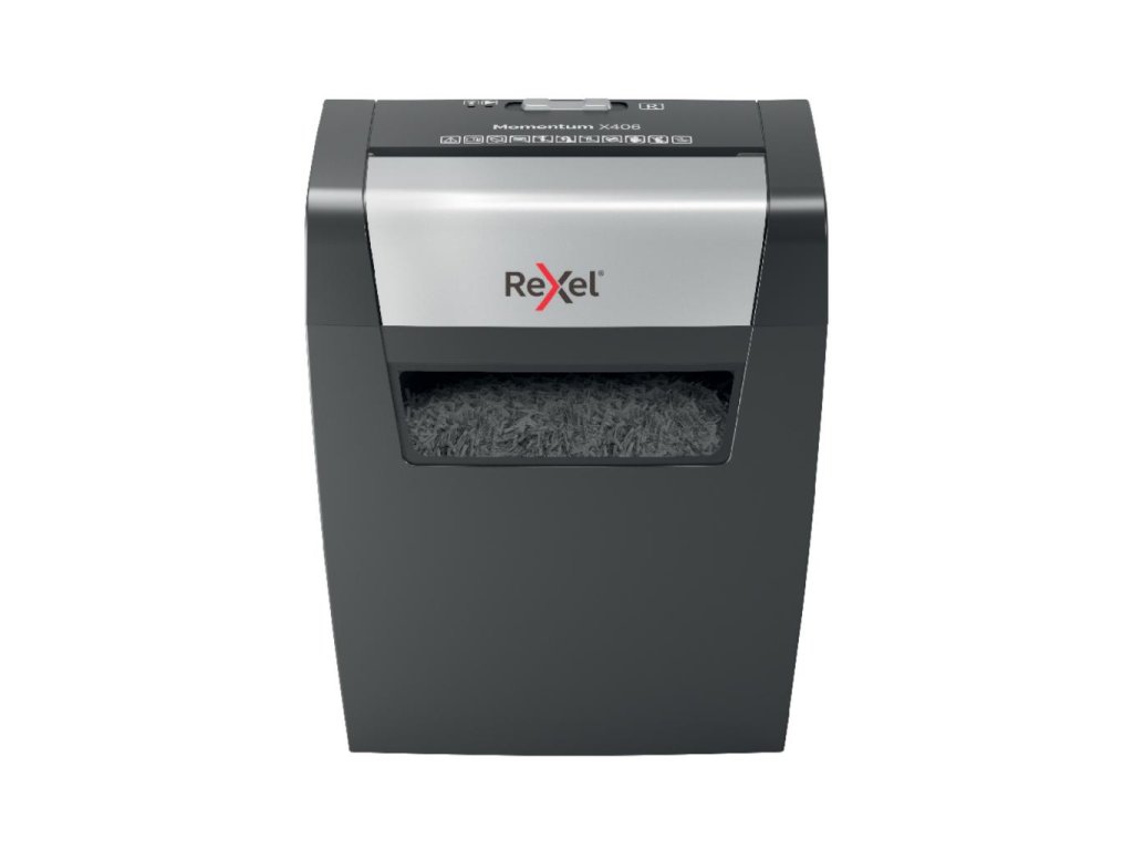 Nezastaviteľný skartovač! Rexel Momentum X406 skartuje až 6 hárkov naraz a vydrží v nepretržitom chode 3 minúty, vhodný na použitie doma. Krížový rez na úrovni zabezpečenia P4 reže papier na malé časti s veľkosťou 4 × 28 mm. Odpadový kôš s kapacitou 15 l pojme 125 hárkov A4.