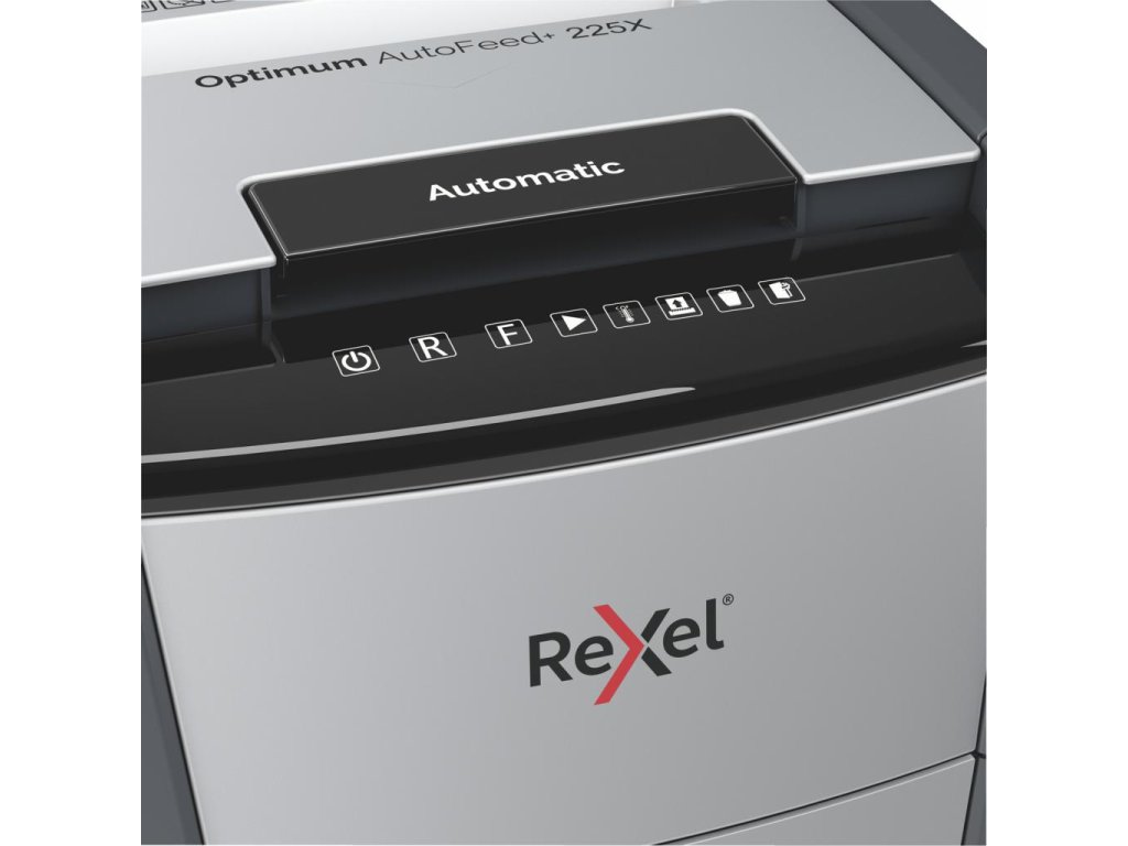 Skartovačka Optimum AutoFeed 225X automaticky skartuje až 225 hárkov papiera A4 (80 g/m2) krížovým rezom P-4 (4 × 26 mm). Tento stroj na skartovanie s automatickým podávaním je sofistikovaný kancelársky drvič s výsuvným košom s objemom 60 l. Nie je potrebné ručne vkladať papier alebo vopred odstraňovať svorky a kancelárske sponky, táto automatická skartovačka papiera urobí všetko za vás.