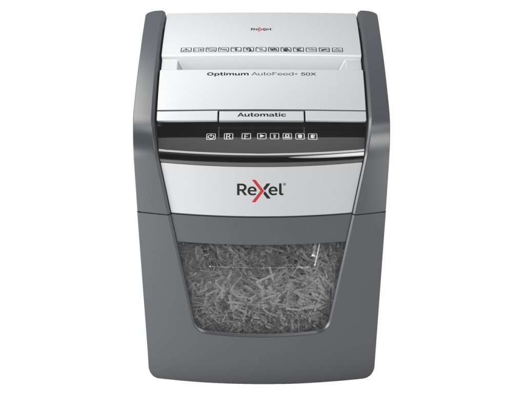 Skartovačka Optimum AutoFeed 50X automaticky skartuje až 50 hárkov papiera A4 (80 g/m2) krížovým rezom P-4 (4 × 28 mm). Technológia AutoFeed uľahčuje skartovanie celých stohov papiera, čo v porovnaní s manuálnym skartovaním šetrí 98% času. Skartovanie sponiek a sponiek / kreditných kariet. Táto automatická skartovačka je vďaka kompaktnému 20 l košu ideálna na použitie v domácnosti alebo v domácej kancelárii. Nie je potrebné ručne vkladať papier alebo vopred odstraňovať svorky a kancelárske sponky, táto automatická skartovačka papiera urobí všetko za vás.