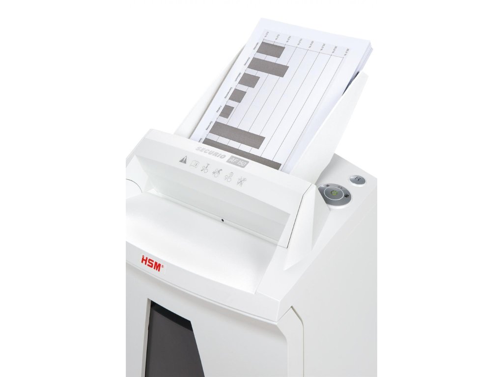 Kapacita: 8-10 (80g/m2); 10-12 (70g/m2). Rozmer rezu: 4,5x30 mm. Rýchlosť skartovania: 65 mm/s. Objem odpadovej nádoby: 34 l (cca. 415 listov). Stupeň utajenia (DIN 66399): O-3, P-4, E-3, T-4, F-1.