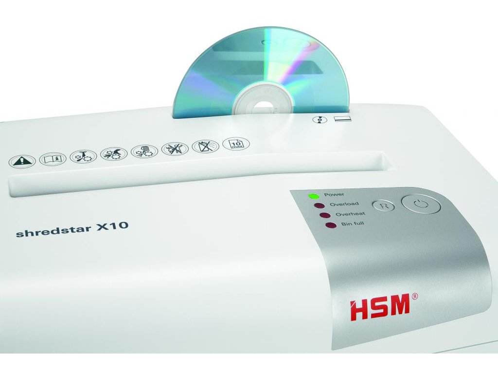Profesionálna ochrana údajov na pracovisku. Tento praktický skartovač dokumentov pre domácu kanceláriu s rezaním častíc a samostatnou rezacou jednotkou CD bezpečne skartuje súbory a disky CD/DVD. CD, DVD, plastové karty a spinky možno ľahko skartovať pomocou samostatnej jednotky na rezanie CD. Rozdrvený materiál sa samostatne separuje. LED indikátor zobrazuje prevádzkový stav zariadenia: napájanie, preťaženie, prehriatie, zásobník je plný.